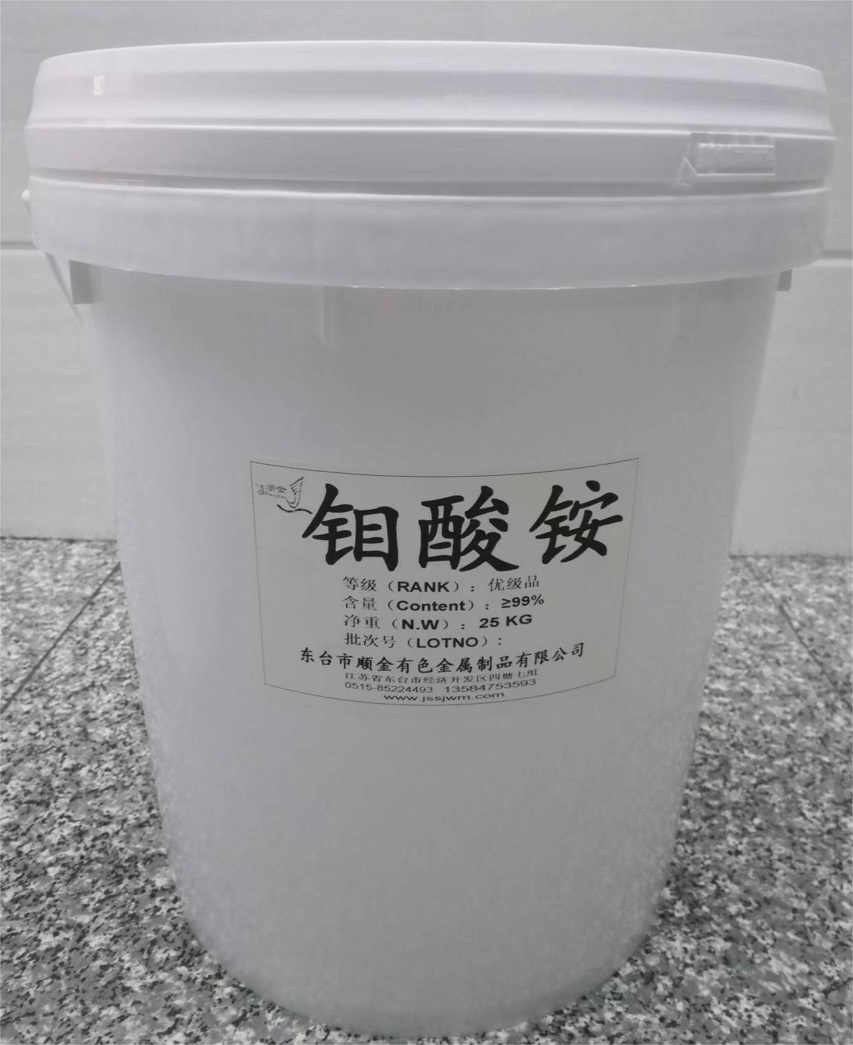 性 狀:白色或微黃色結晶粉末,無肉眼可見雜質,產品通過40目篩網,鉬酸銨松狀比重0.6-1.4g/cm3,易溶于氨水堿,不溶于醇和丙酮。規 格: