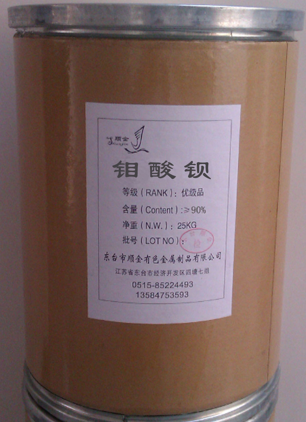 由鉬精礦經氧化焙燒、用液堿浸取后,再與氯化鋇反應而制得。